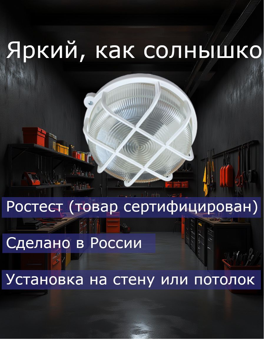 Представляем вашему вниманию светильник для гаража, который идеально подходит для установки в душевых, подвалах, ванных комнатах, душевых, теплицах, беседках и других помещениях со сложными условиями эксплуатации. Этот термостойкий настенно-потолочный влагозащищенный светильник обеспечивает надежное освещение и соответствует всем требованиям безопасности.