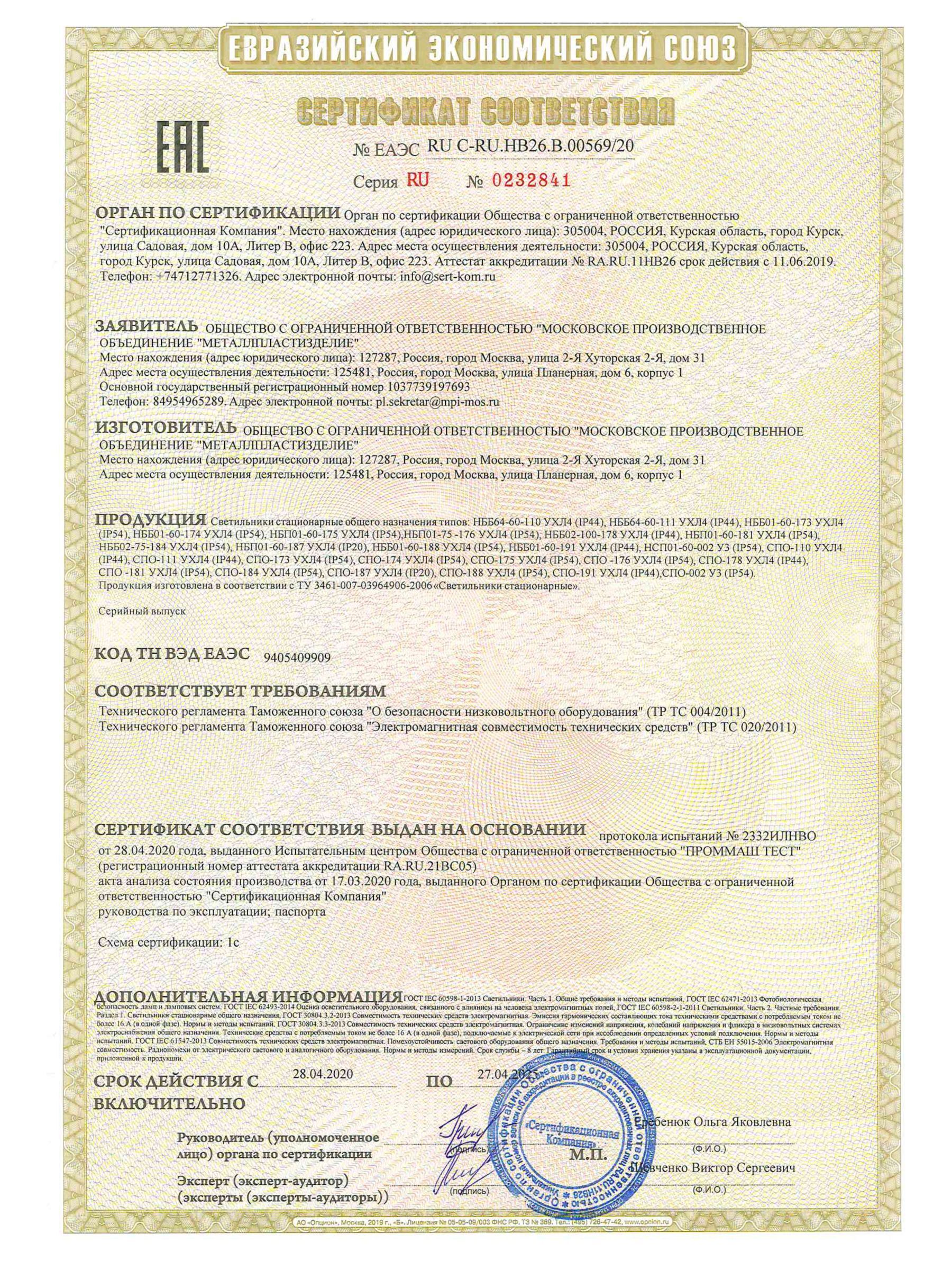 Сертификаты соответствия подтверждают высокое качество и безопасность продукта.